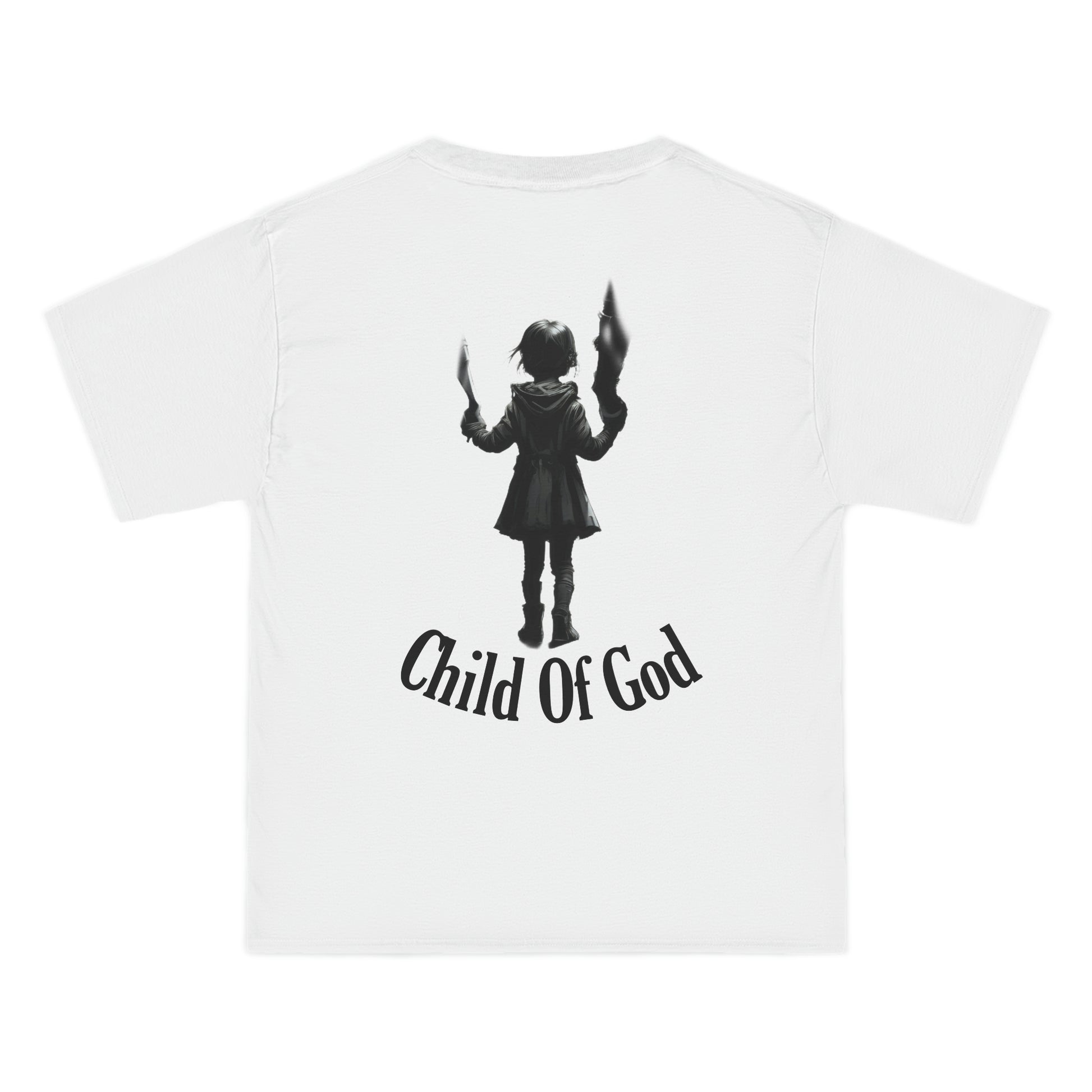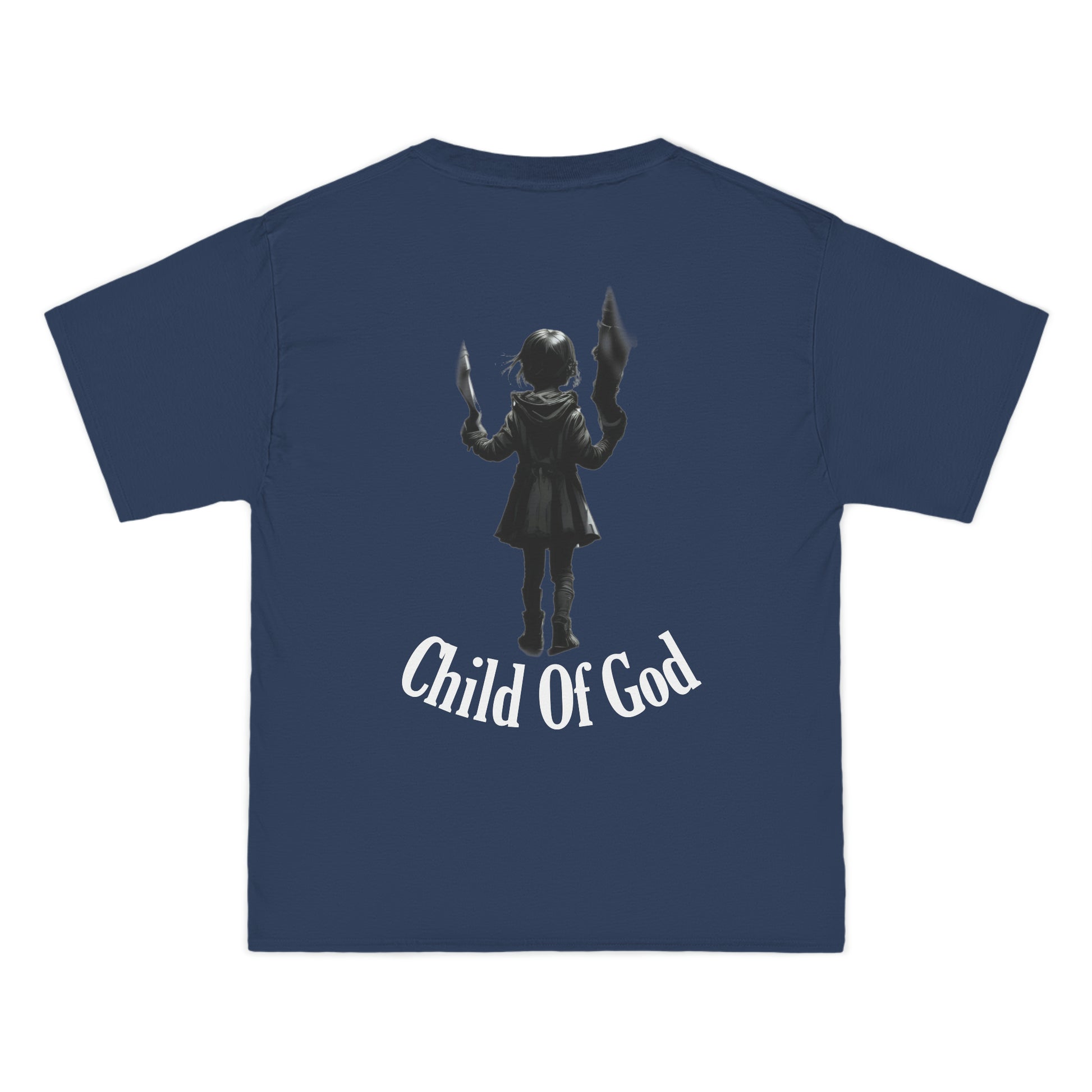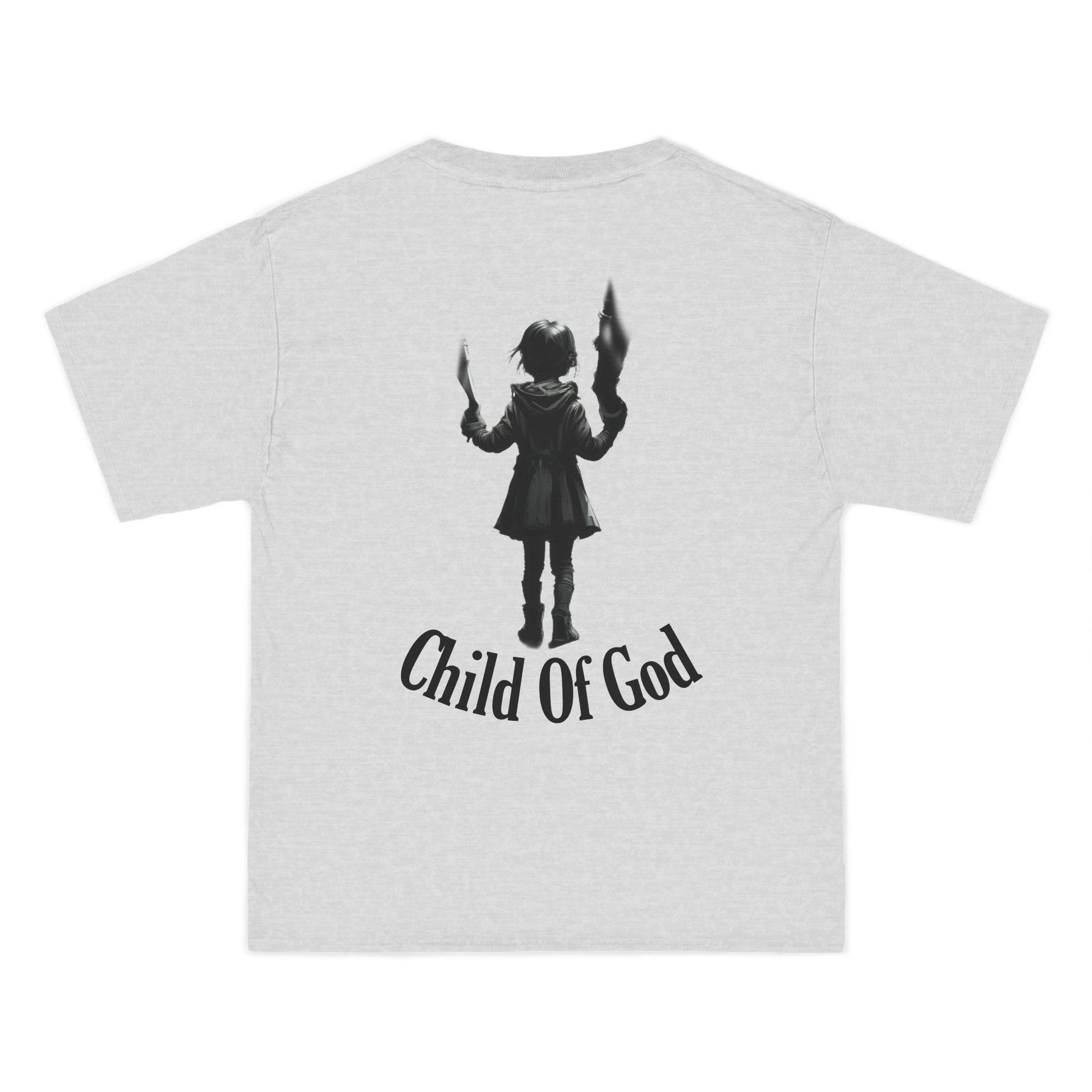 Front Design: Emblazoned across the chest is the powerful declaration, "Child of God." The bold typography and clean design make a strong and uplifting statement, allowing you to proudly showcase your faith with every wear. The minimalist front design ensures that the focus remains on the empowering message.