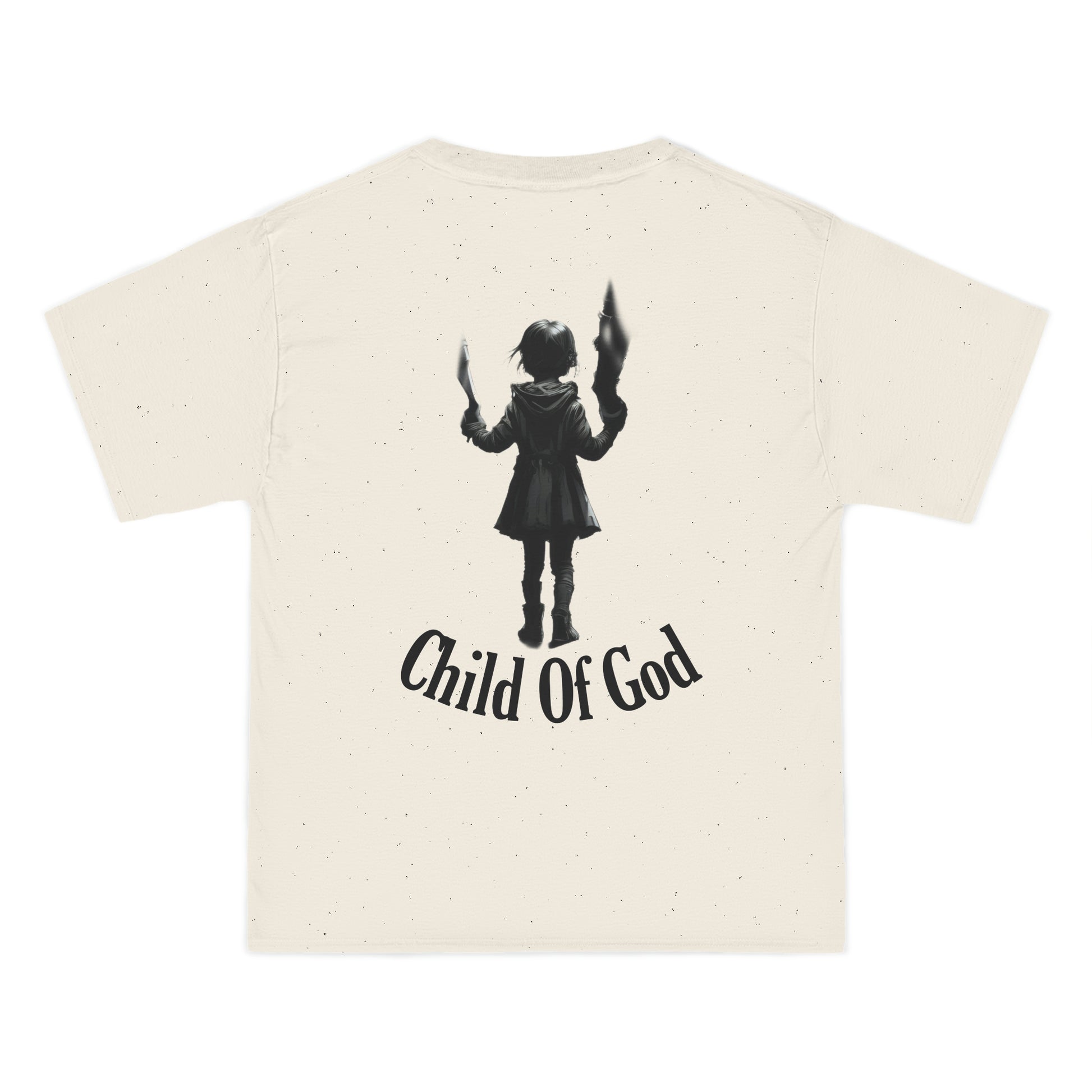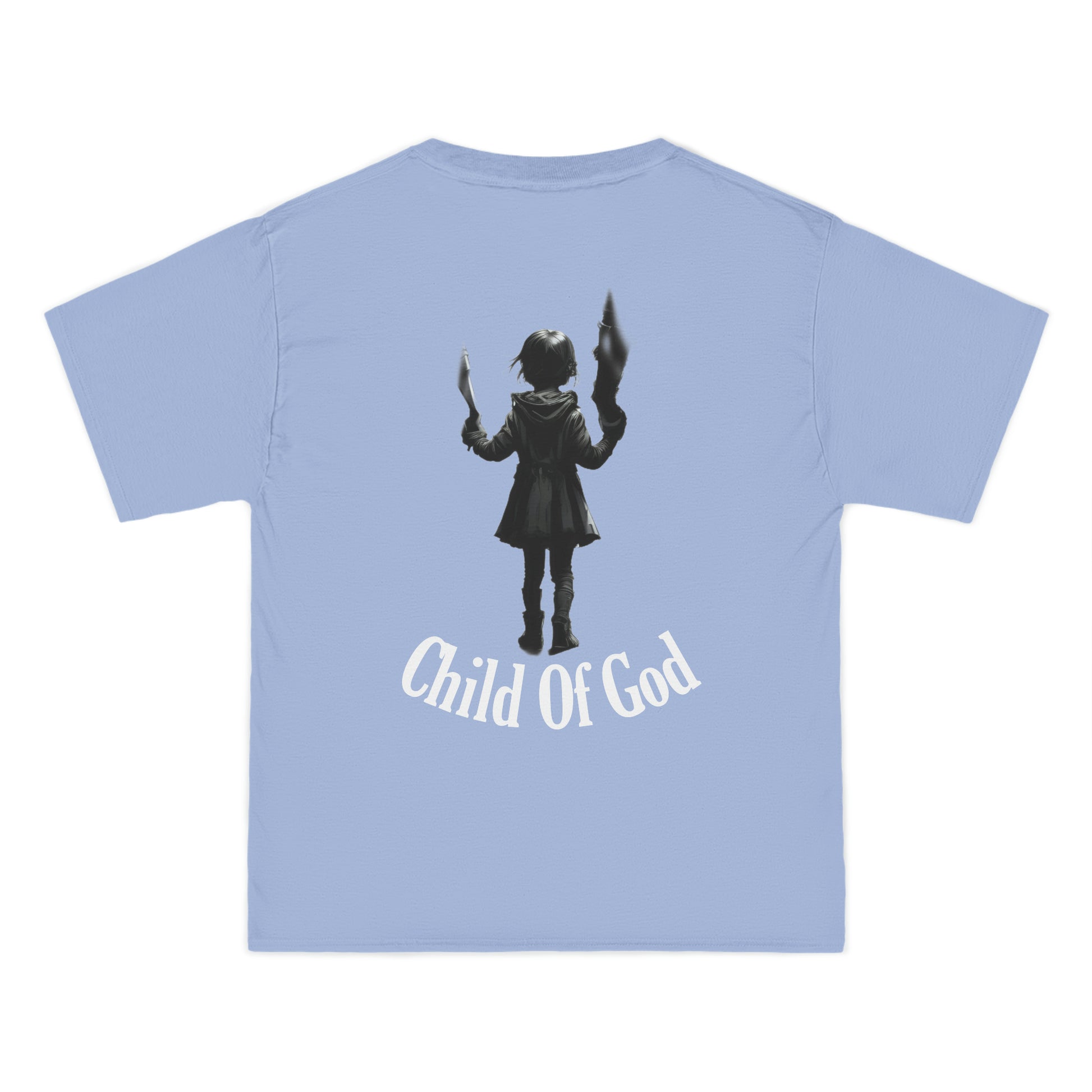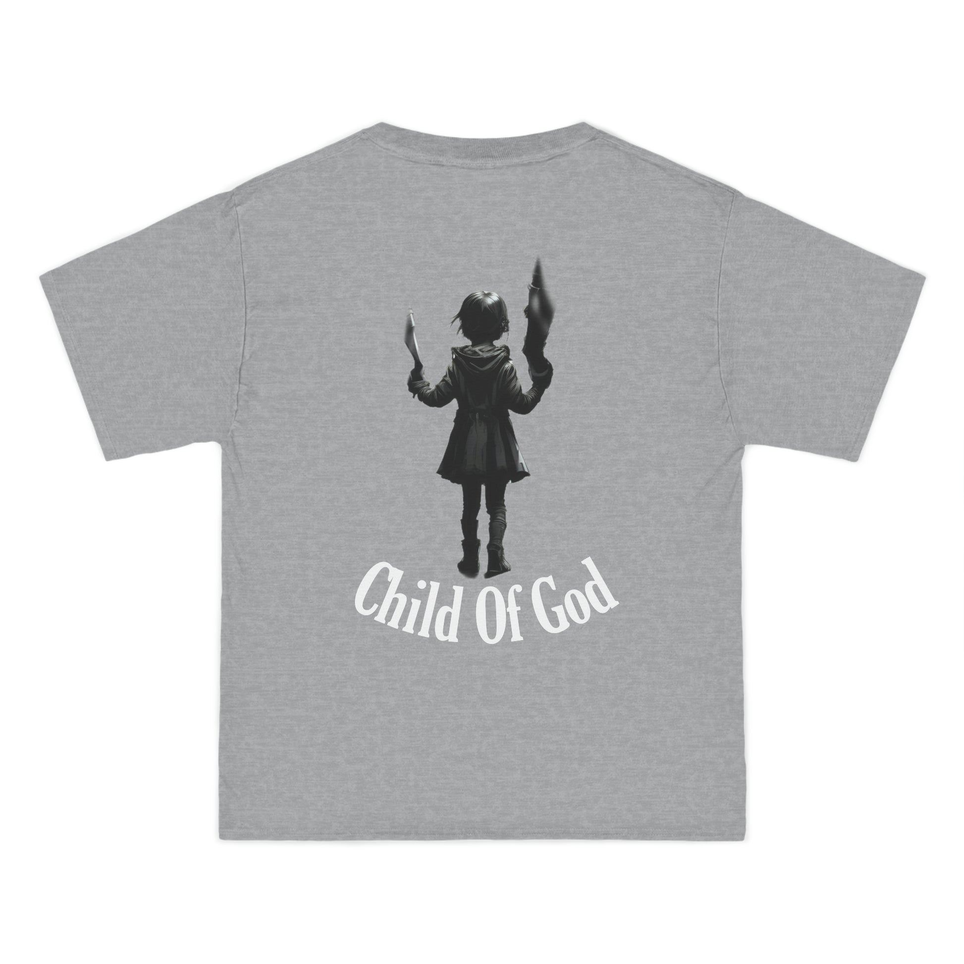 Front Design: Emblazoned across the chest is the powerful declaration, "Child of God." The bold typography and clean design make a strong and uplifting statement, allowing you to proudly showcase your faith with every wear. The minimalist front design ensures that the focus remains on the empowering message.